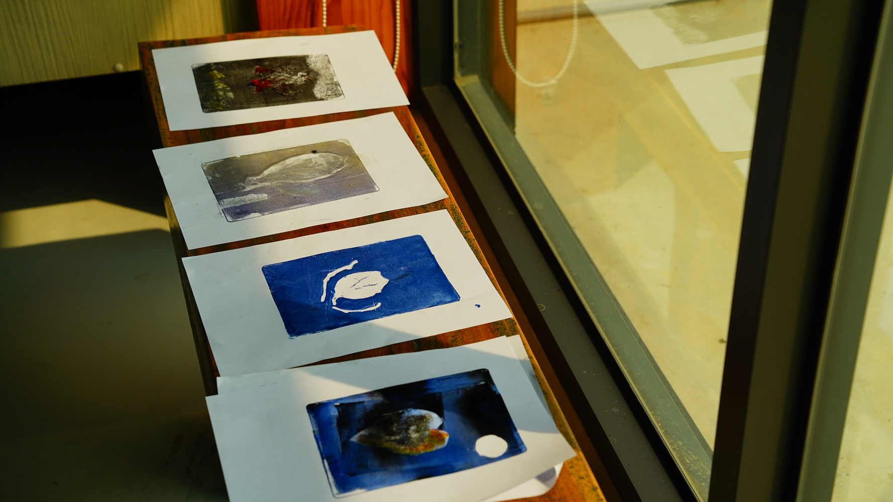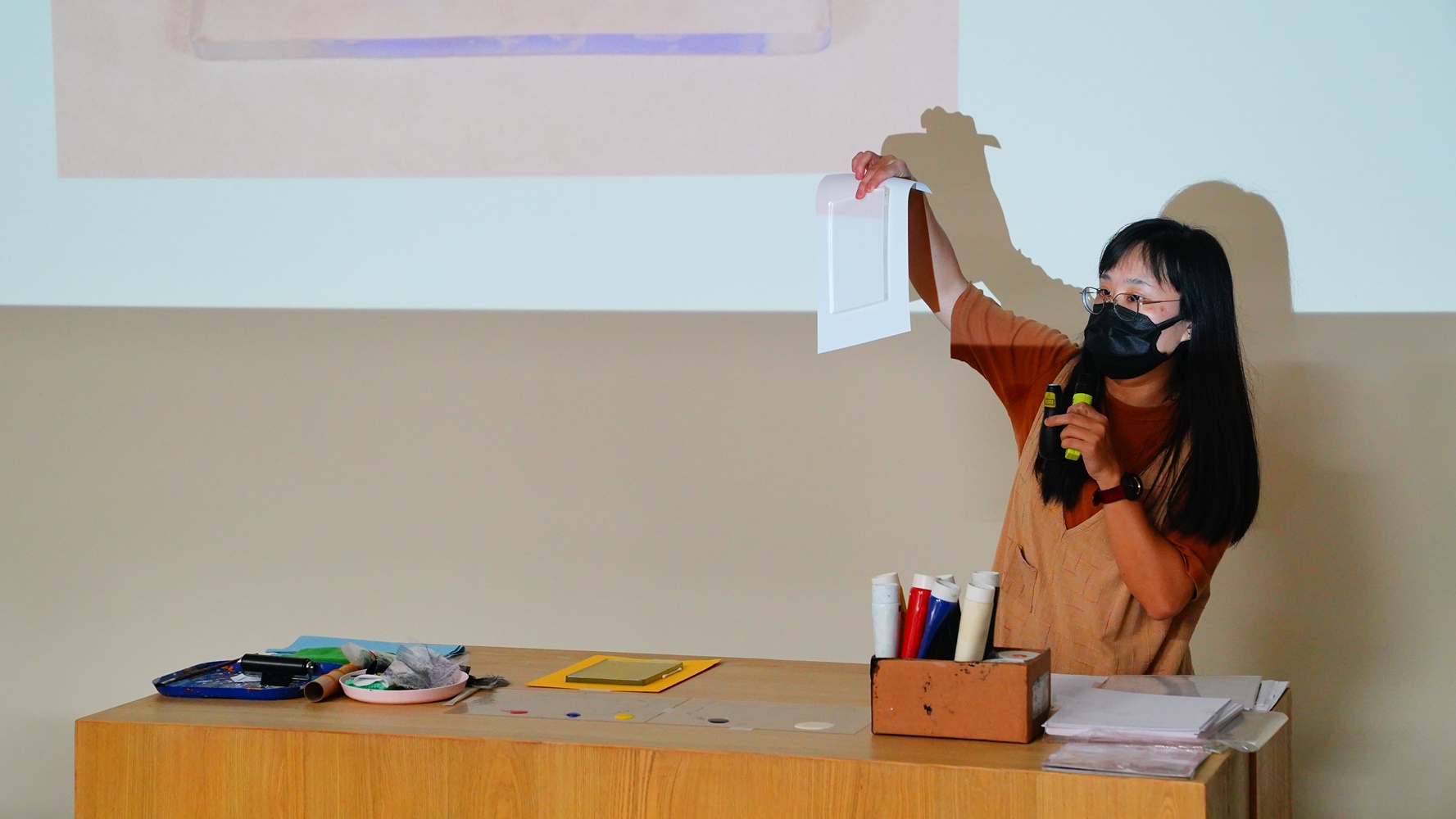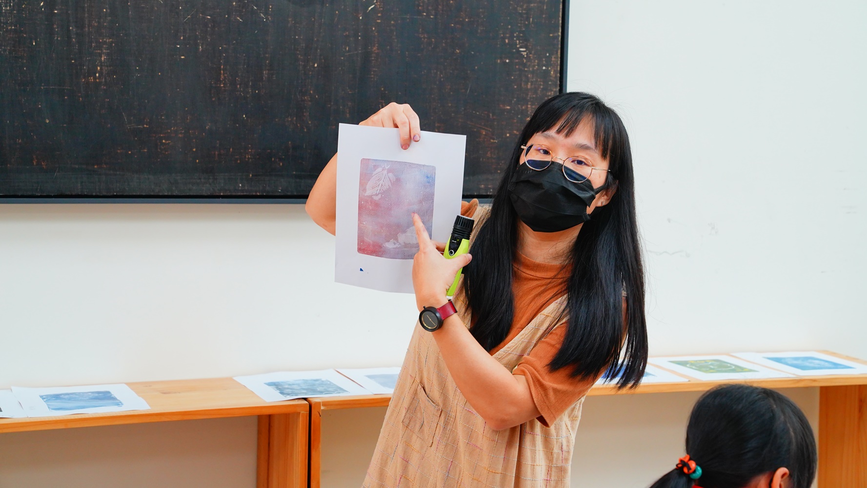 美術課邀請到藝術家紀玲玉設計教案,以明膠板和現成物當作創作媒材,邀請同學將簡單的物件透過壓印與製版的方法,將思緒與心情,轉印到畫紙上。