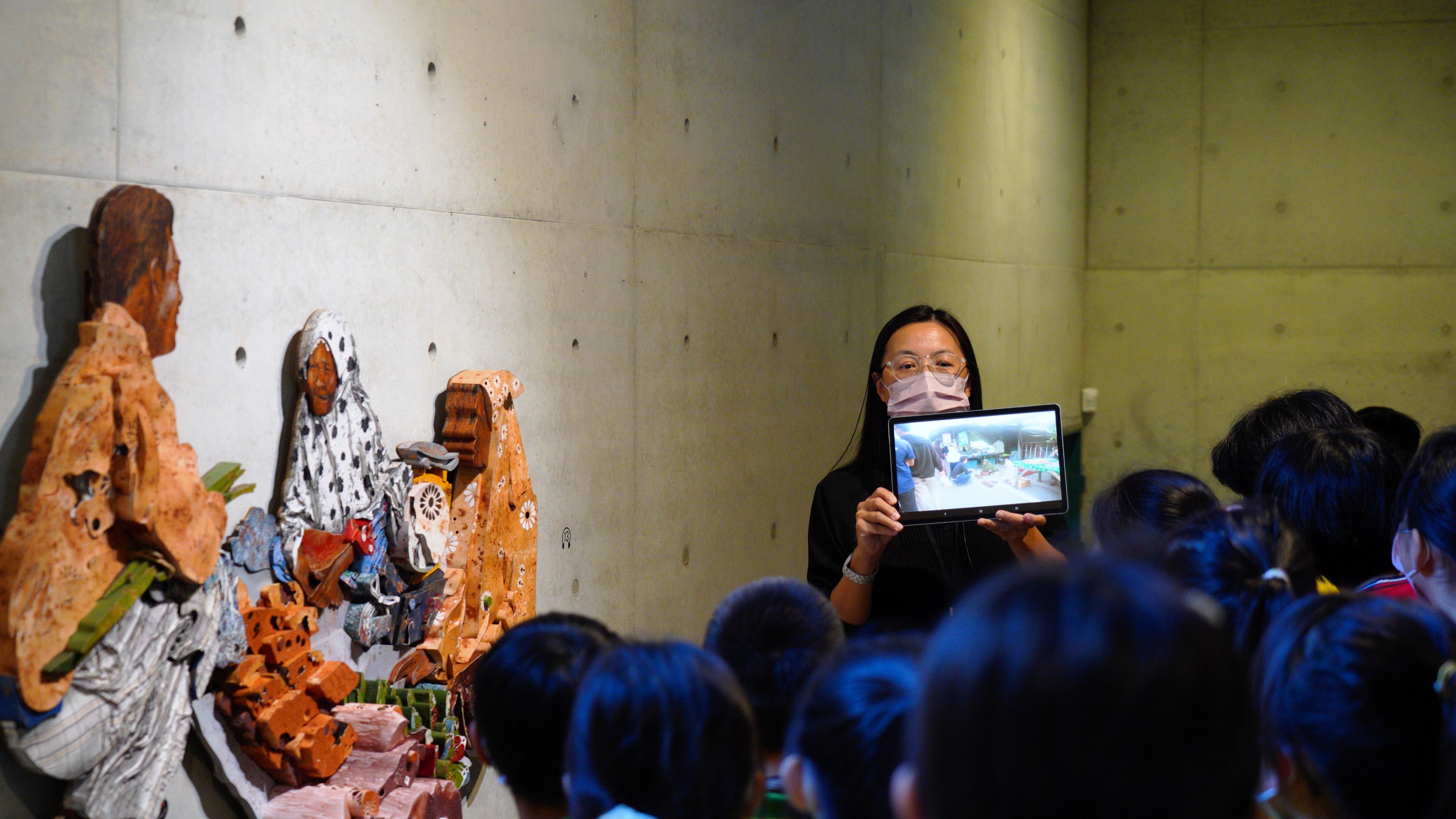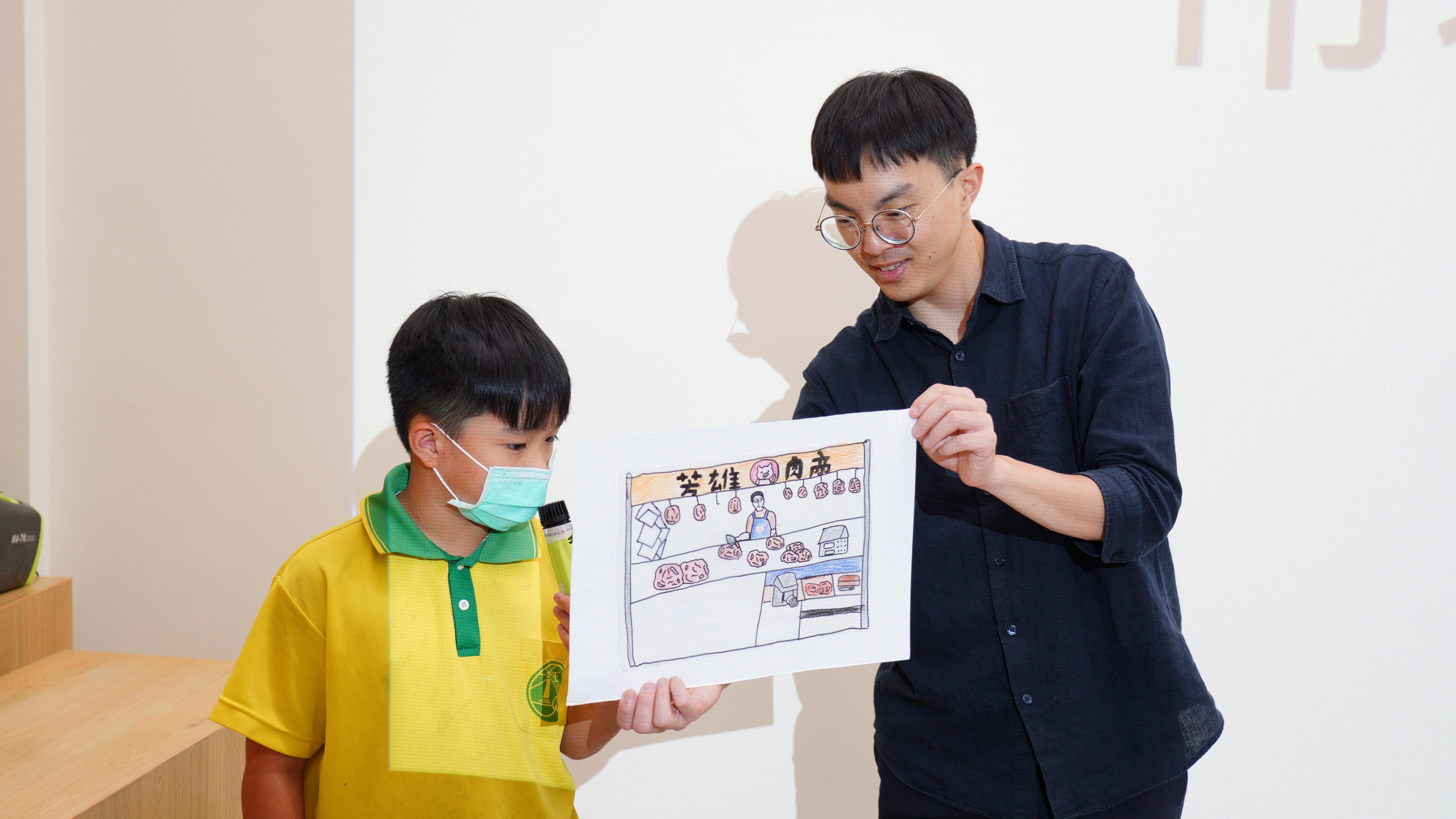 ◇ 來自王功國小的四年級同學,在來館之前,先請他們觀察生活中可觸及的攤商與市集。當場連結到展場一樓欣賞了庫索菲亞與徐均育的創作,這讓他們充分感受到生活與創作之間的連結。