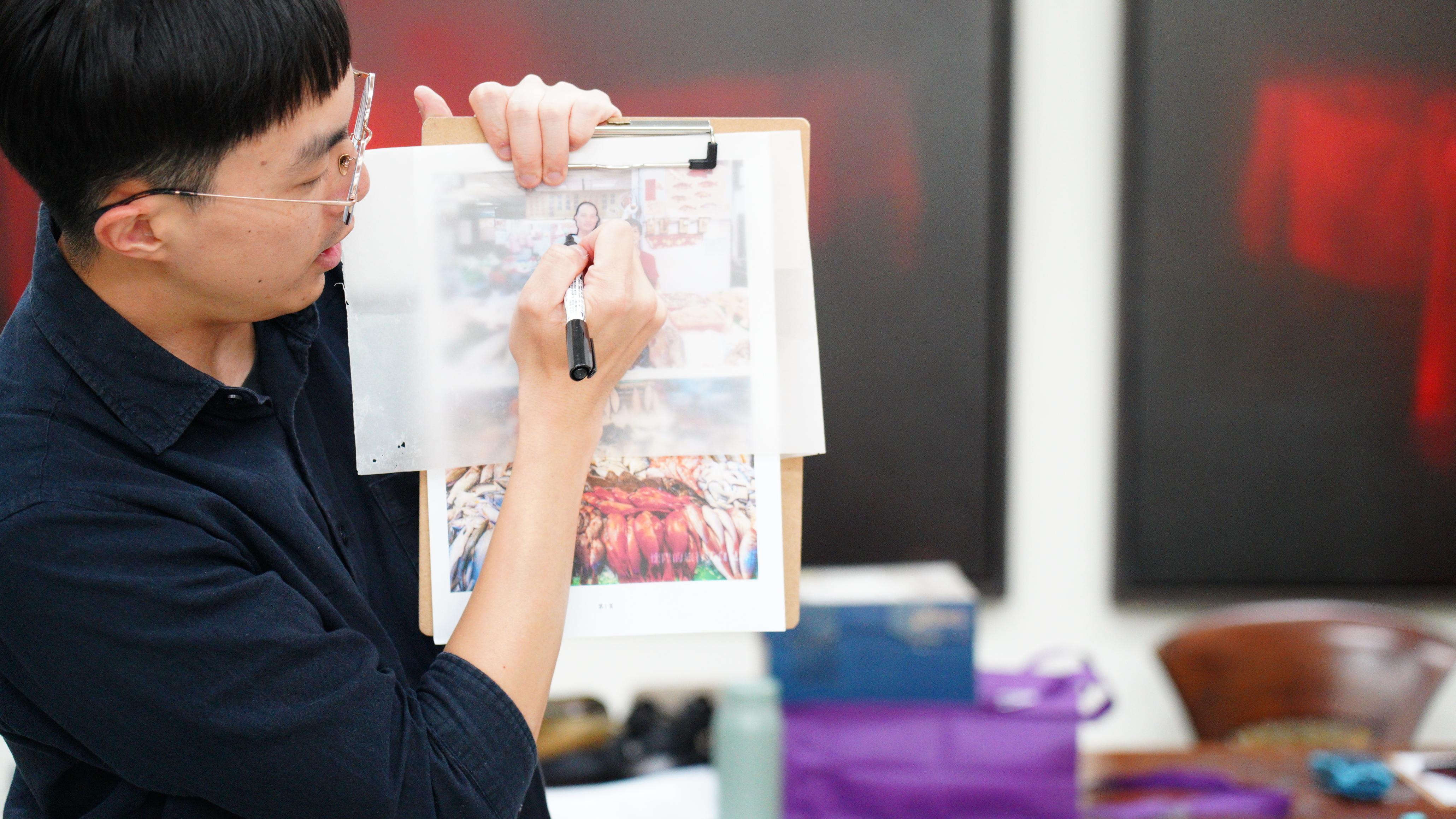 下午的創作課與市集相關,導覽老師請同學觀察庫索菲亞所拍下的照片與創作結果之間的異同。