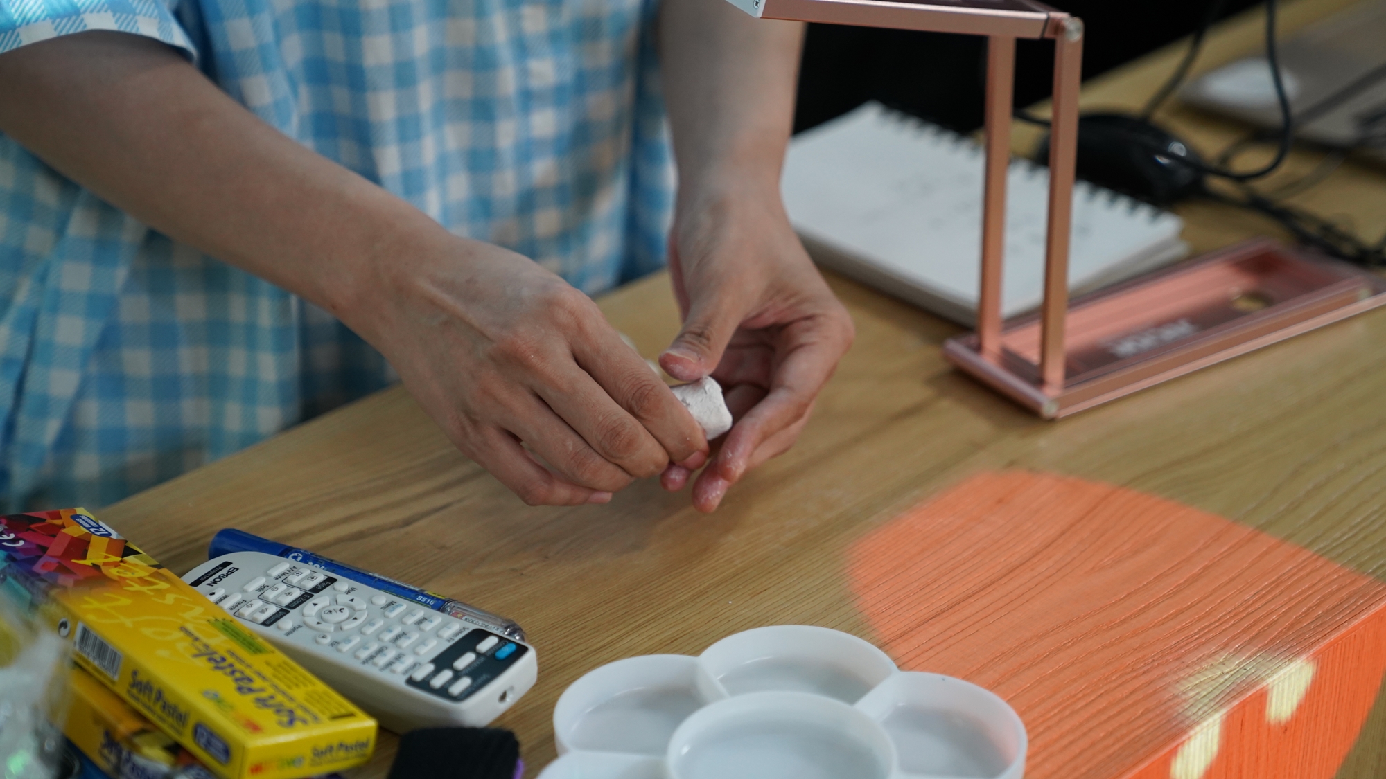 謝老師一步一步示範紙黏土的基本技巧。