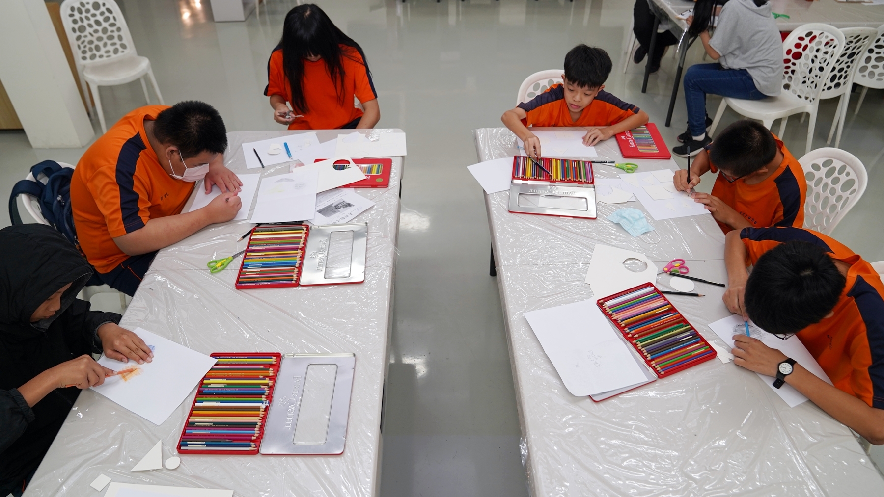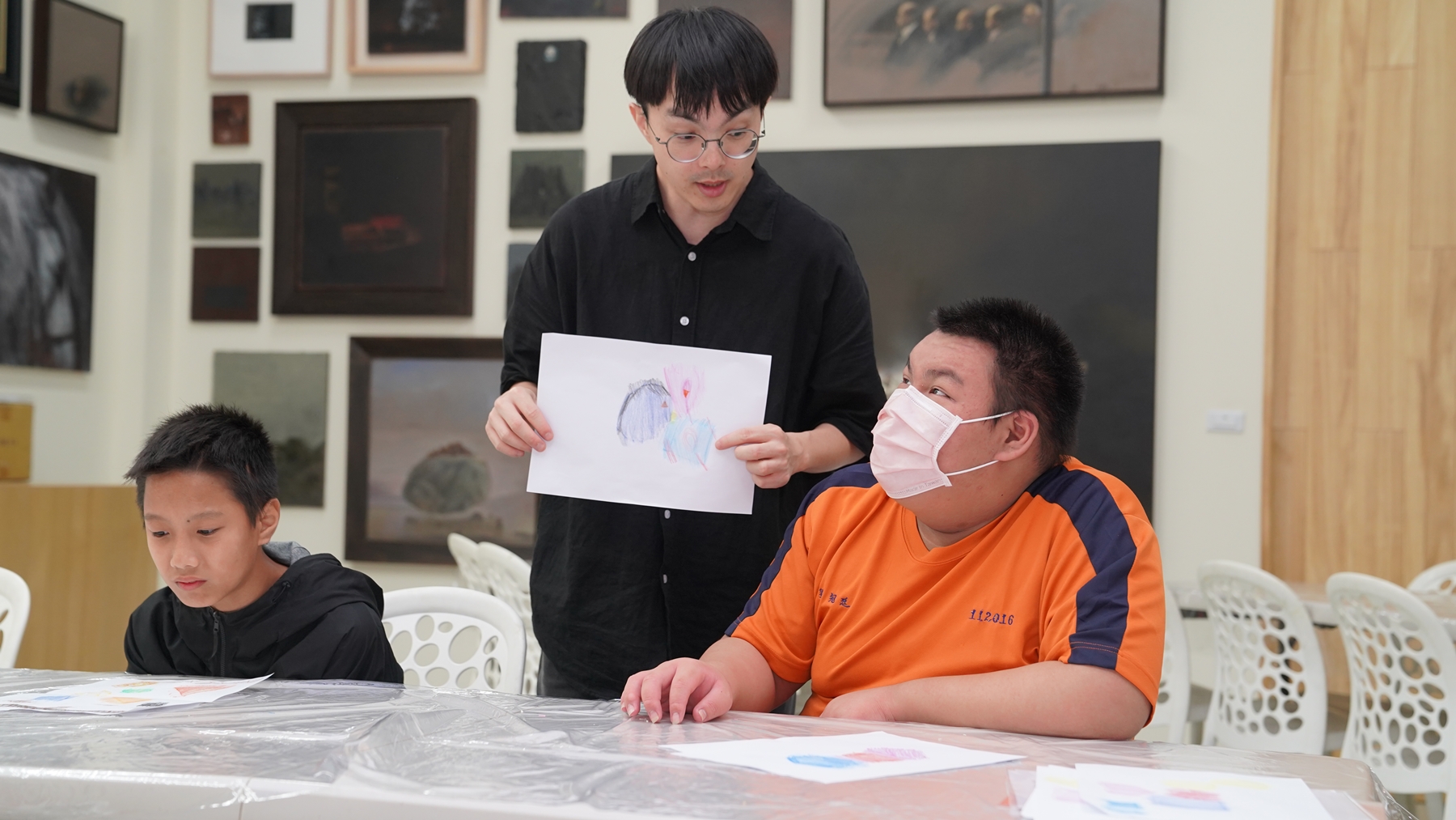 對美術館來說也是一樣的,在藝術面前,每個人都擁有自己的天賦與特質,擁有獨到欣賞作品的觀點,不把每一個學生刻劃成相同的模樣與眼光。「我的美術課在美術館」希望通過實際的體驗,鼓勵同學們勇於感受,自在學習!如同這場美術課,因為人數更少,導覽員與大家的距離更親近,創作課也能觀照到每位同學,讓走進美術館成為日常的經驗,成為人與人互動的暖心空間。
