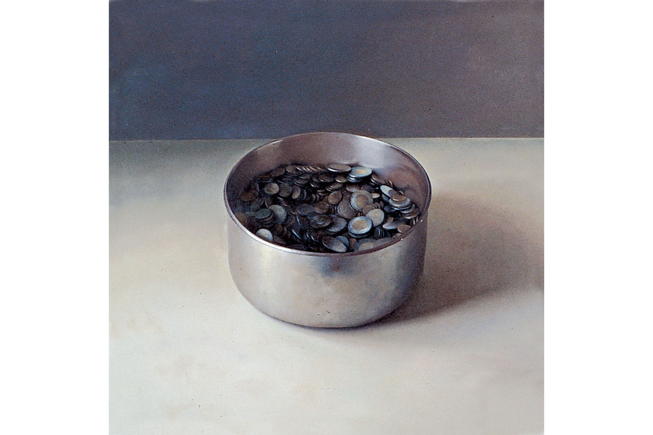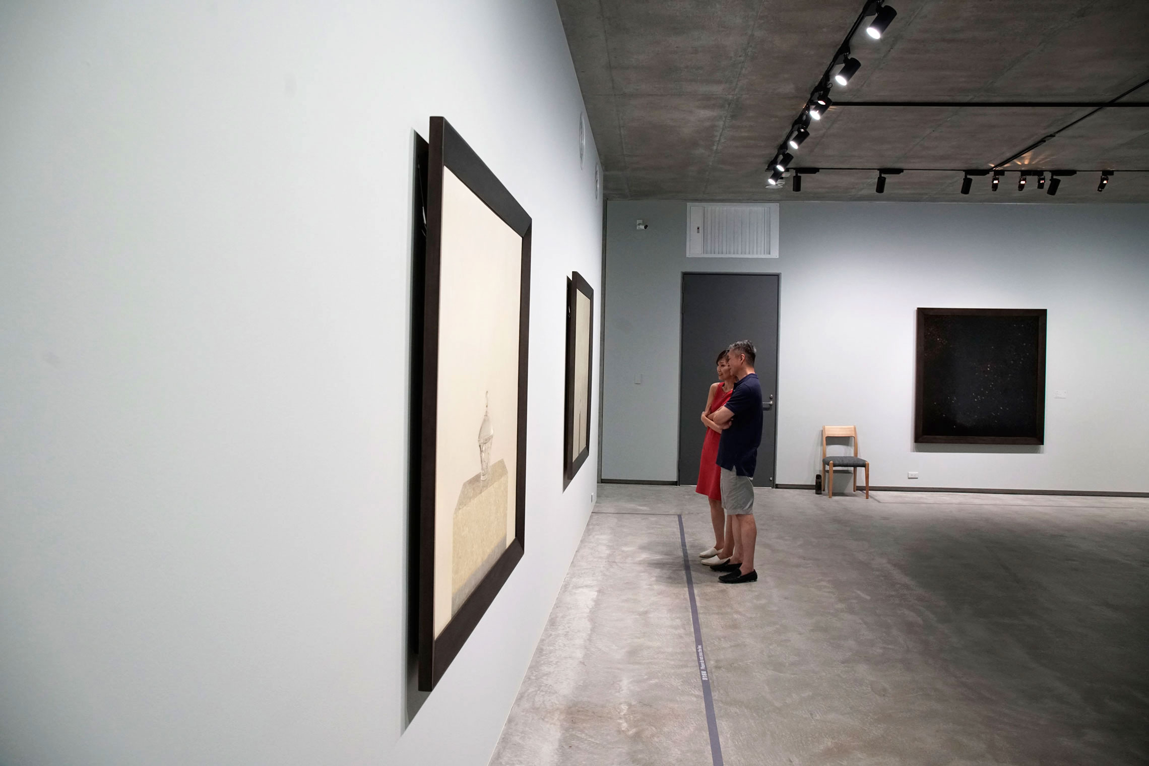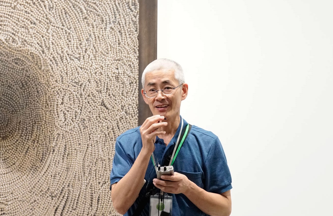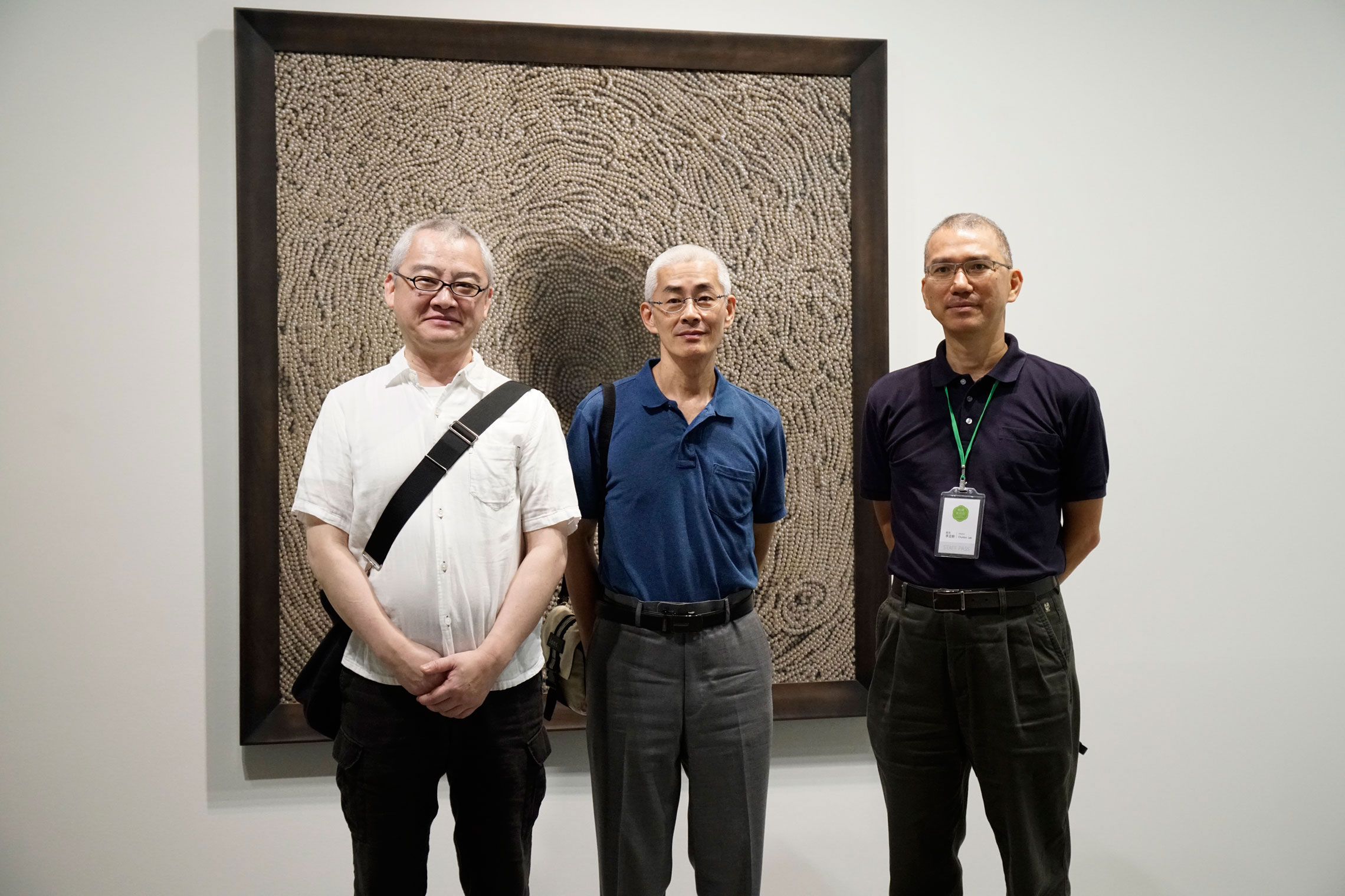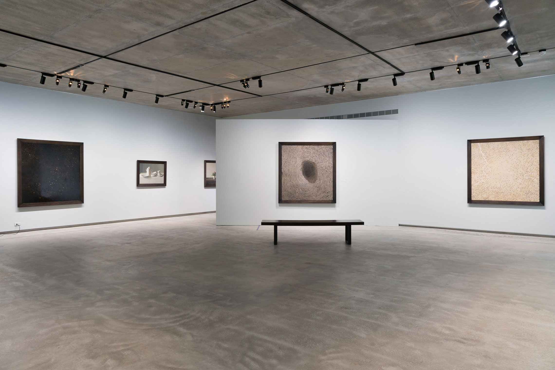<慈悲的波動>、<天行露>和<常無常>三件作品是顧何忠近四年尚未對外發表的新作,不同於以往對單一物件的寫實觀察,反之書寫一種宇宙運行的景象。遠看這三件作品,彷若進入太空般的蒼穹浩瀚;近觀,則見規則的珍珠環繞、互相交疊的銅板以及散落於大理石板上,粒粒清晰的明珠。這些看似平常的物件,卻以一種非凡的狀態迎接觀者。創作者將原本置於中央的物件抽去,換得的是一種更寬闊無邊的空無與永恆,並將「我」不斷地縮小、縮小再縮小,以一種更謙卑的姿態建構與萬事萬物溝通的路徑,踏上「空不異色,色不異空」的悟道之途。