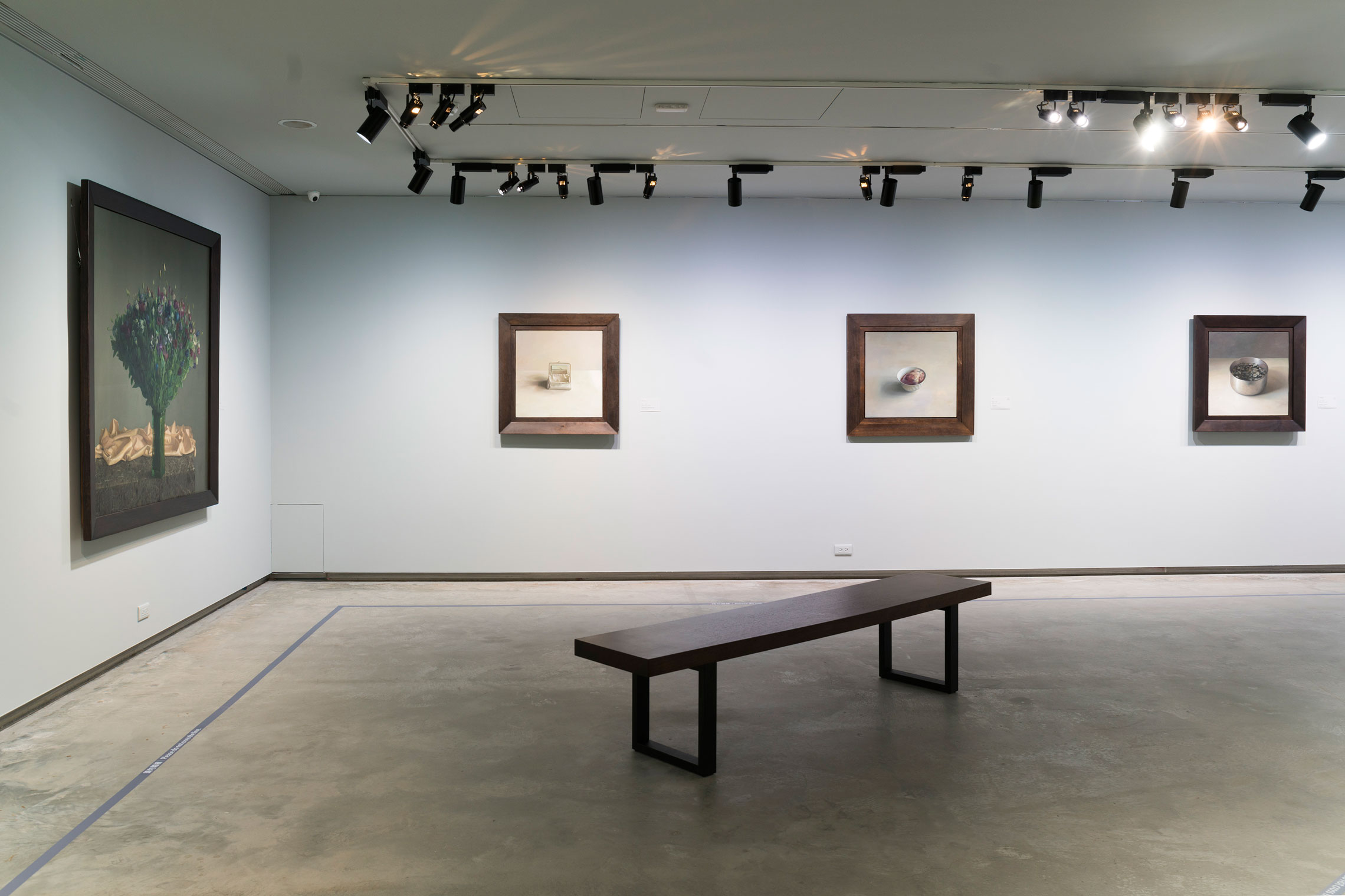 「揭露‧存在」的定命最早出現於顧何忠1999年第一次個展中,始終如一的他,對於展覽名稱如同面對老友一般「念舊」;同時也傳達了顧何忠創作生涯不斷的藉由靜物油畫創作,完整自我修行的意志。他的靜物開始於一只白瓷空盤,其言:「一個白色的瓷盤引領我走入靜物畫。每當餐後的短暫休憩片刻,我的目光總會屏息凝神的注視著它,就像是個至高無上的瑰寶,本應在奪目之處供人投以尊崇的敬意。這樣的經驗,讓我找尋到一些鏈結,將靜物畫中所要傳達的意涵,與現實世界的關係逐漸的連繫起來。」因此,本次集結了藝術家從1999年至今的代表創作19件,畫面中的主角雖多為日常隨手可得的物件,可能是食器、食物,装物的皿器等,無論是空的器皿、放入物件的器皿,或者物件本身,甚至大理石桌檯,都在藝術家直觀的描繪下來,讓欣賞者眼見可視的「空間」、「時間」與「光線」。畫面所描繪的物件本身(包括作品本身)是物質,也是精神的載體,因此藝術家期待透過揭露物件之真實,達到身心完整的境界。
