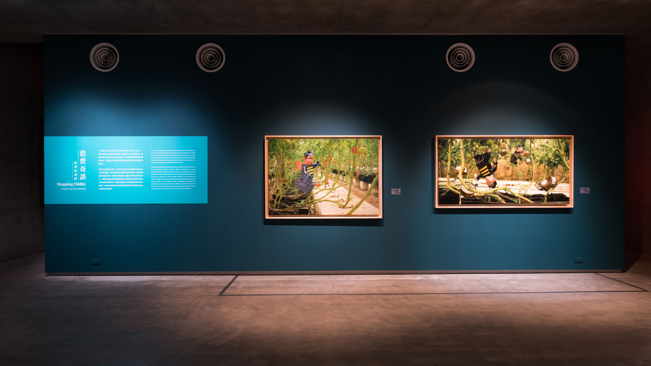 「消費奇談」概念來自已故歌手大衛鲍伊的單曲「Space Oddity」,鲍伊從現實生活及電影中獲得靈感,創造太空人登月的虛構任務。楊博堯在此系列創作中以樂高人形象現身,在熟悉卻詭異的場景裡扮演虛擬角色,且營造出充滿童趣與奇想的氛圍呈現個人對日常消費行為的觀察。