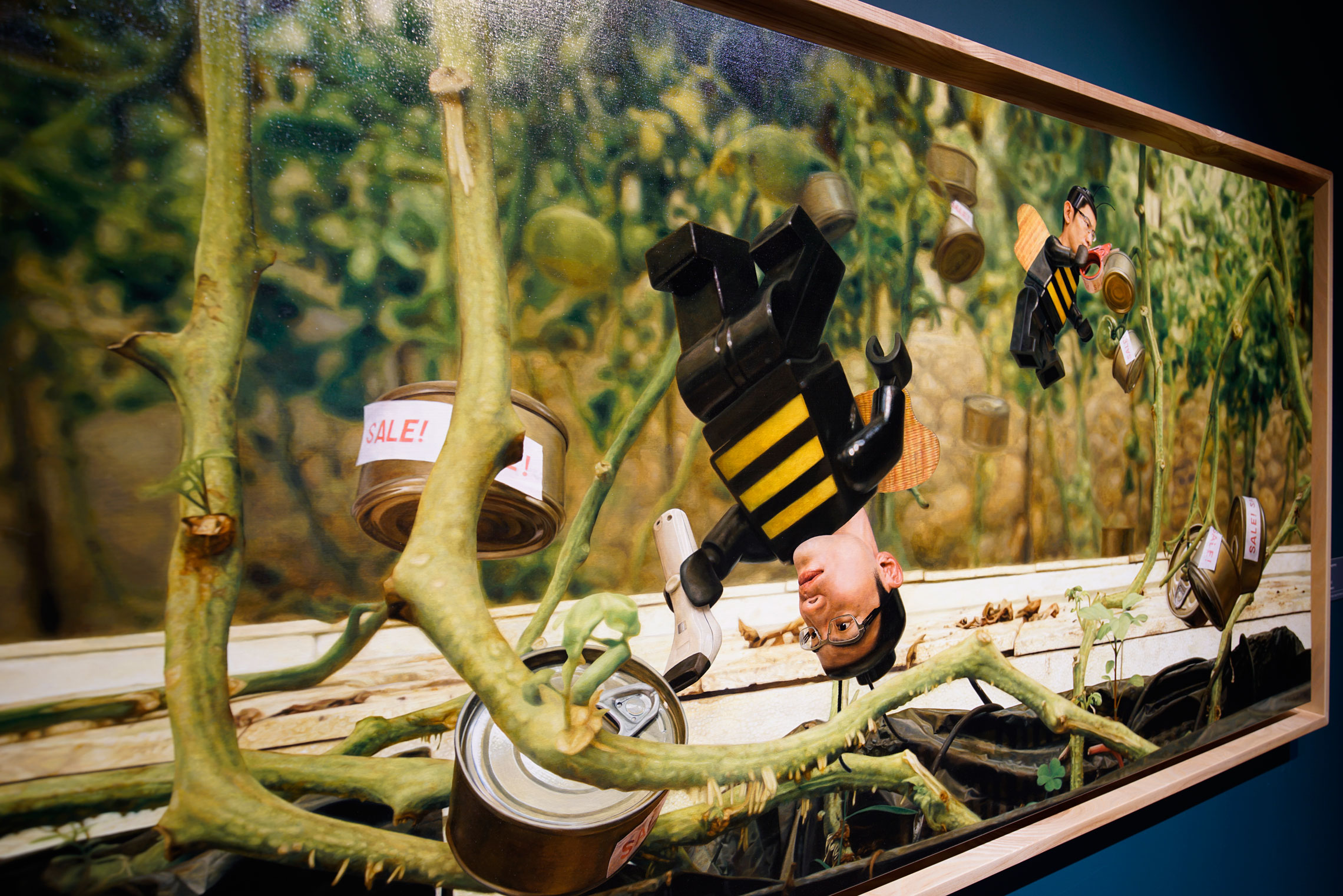 作品中的虛構世界及物件,在創作者的詮釋下有著與真實生活相似卻不全相同的關係,這些場景涵蓋了消費行為進行的場域,以及延伸至這些商品的生產端、及消費心理等討論。議題多半聚焦在日常飲食之中,透過罐頭食品及促銷標籤來隱喻我們生活裡無處不在的當代食品加工業及過度的媒體行銷;且藉由描繪蜜蜂人在各種場景中的身份與心理狀態,提點消費者該取回主動權和盡可能掌握更多消費體系及食品生產過程的完整資訊。
