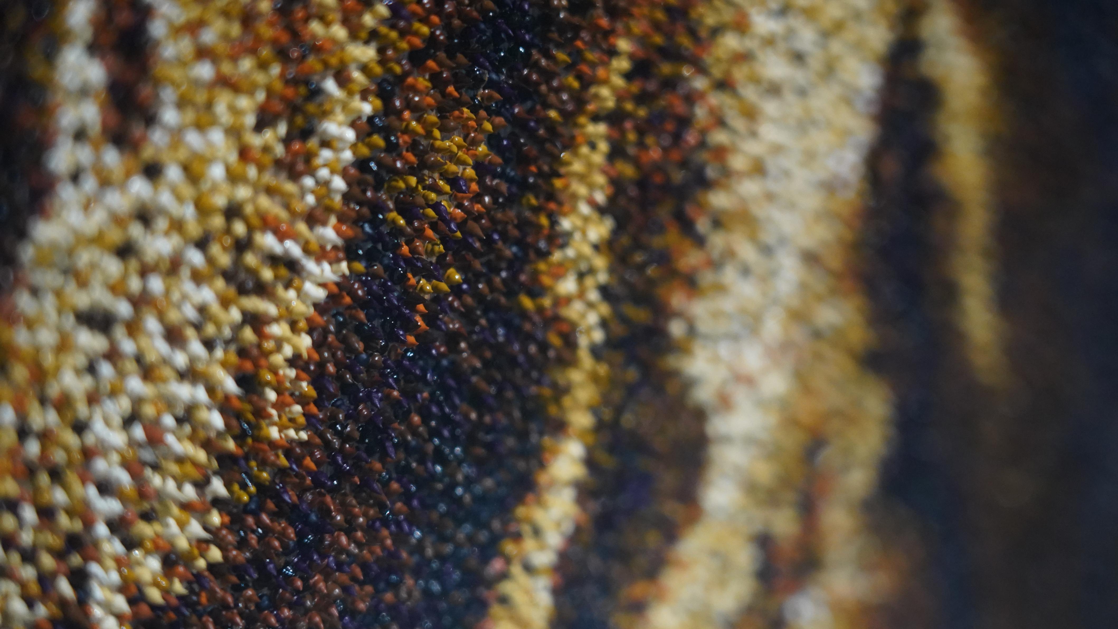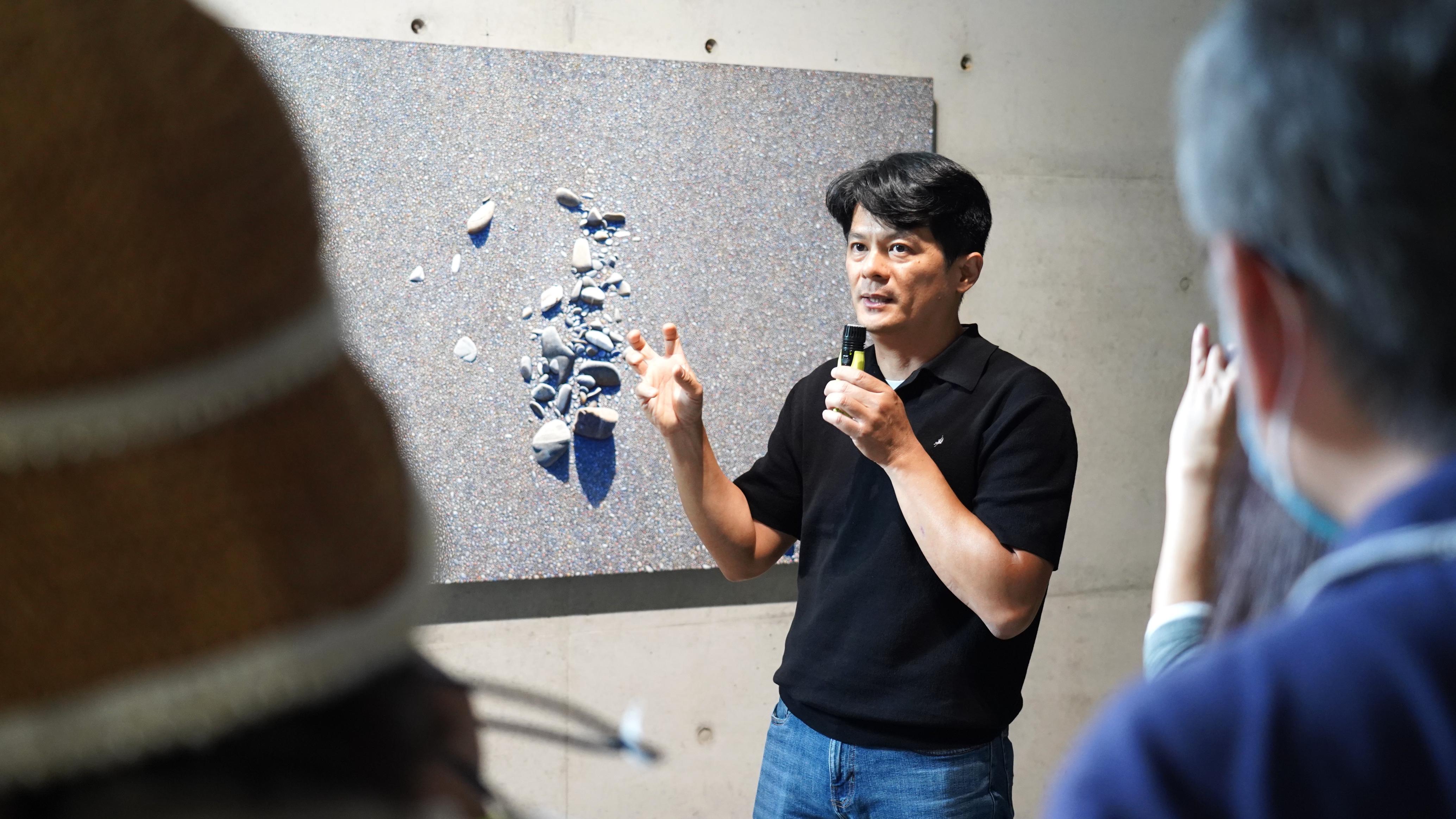 (圖三)台灣藝術家周珠旺導覽、(圖四)周珠旺作品<點沙3>局部特寫