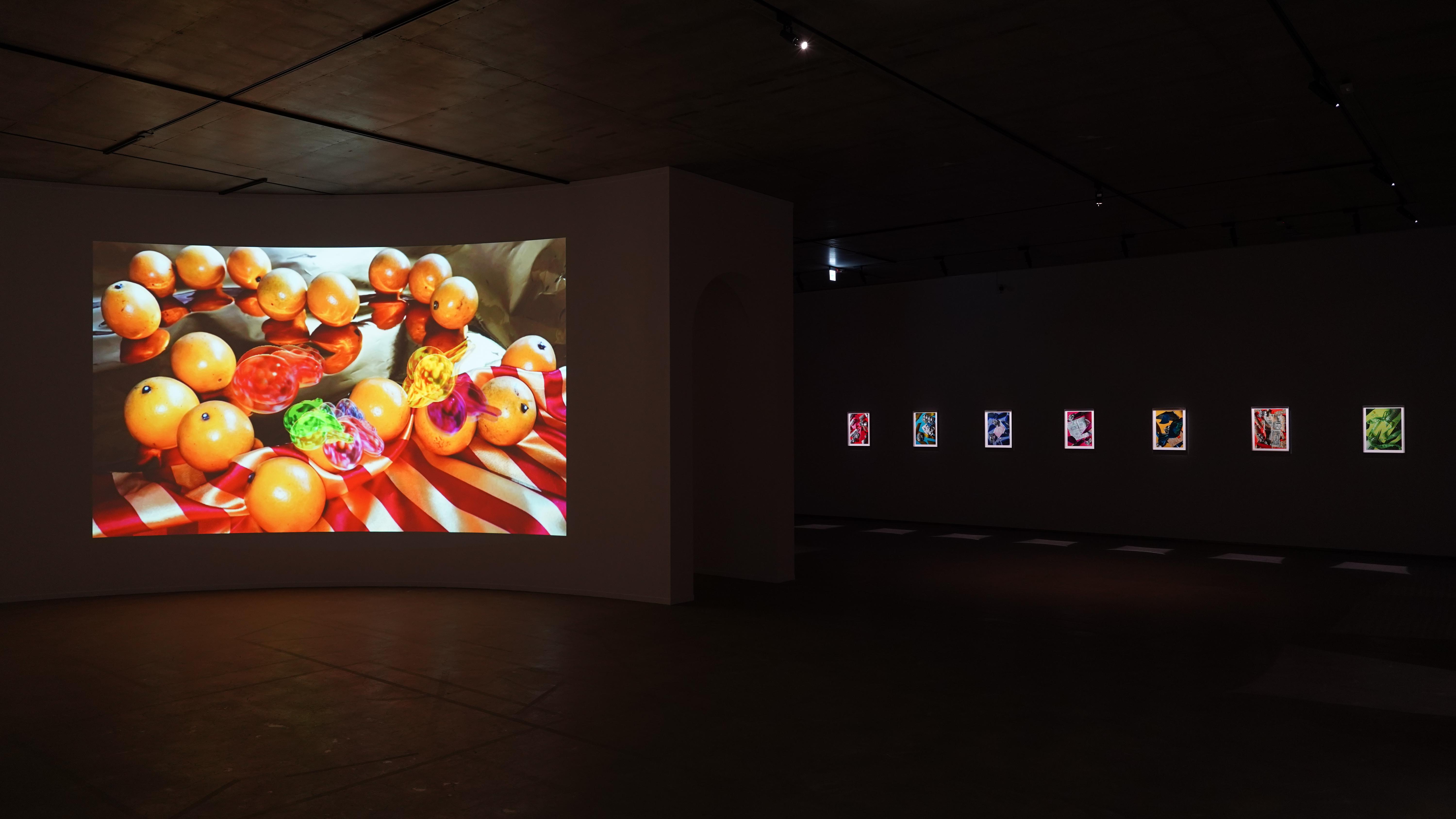 展場三樓則是日本藝術家牧田愛(Ai Makita)的繪畫和台灣藝術家吳美琪的攝影創作,他們的物都有人的氣息,並對科技與人類社會、人造與自然的交互影響感到好奇。牧田愛使用攝影、電腦軟體、AI等工具進行有機的重組,再將影像描繪到畫布上,創作探討自然與人造、有機與無機、物質材料與數據資訊等各種界線,以超寫實技法描繪怪物般的精細機械,來詮釋個人情感、社會現象或景觀。吳美琪的靜物攝影結合了場景搭建、數位繪圖和影像拼貼,從生活中蒐集各種物件來創作,尤其喜歡用反光材質如玻璃、螢光、亮片等元素,透過光線的折射與反射,進而分割空間、挑戰物品的原始形態,如夢似幻的場景延展觀者對物的日常想像。